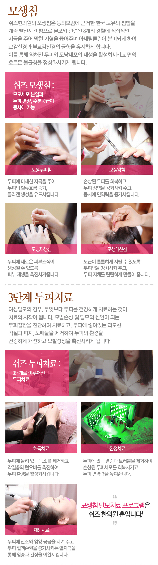 진료과목 : 여성탈모 모생 탈모치료 프로그램 특징