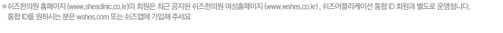 단, 회사의 “패밀리 사이트 단일 ID 이용 정책”에 따라 회사에서 제공하는 쉬즈한의원 자궁클리닉 홈페이지, 쉬즈 어플리케이션에서 동일한 ID 및 Password로 서비스를 이용할 수 있으며 해당 홈페이지에서 제공하는 서비스는 해당 홈페이지의 이용약관에 적용 받는다.